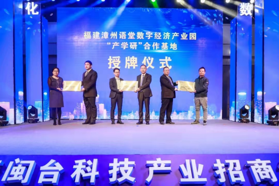 12月5日,在漳州市芗城区金峰众创园举办的芗城区闽台科技产业招商推介会暨漳州信息产业发展论坛活动上,芗城区委书记石振棋为万象城官网与漳州信产投资有限公司“产学研合作基地”成功授牌。