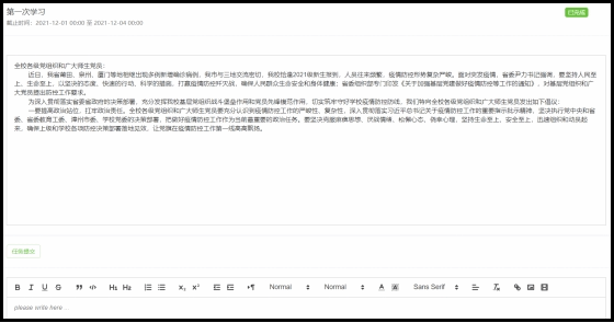 针对这些现象,党员党务管理系统由此而生,该系统顺应现代系统的开发趋势,采用前后端分离的方式开发,数据交互通过JSON的格式来进行传输,与以往前后端不分离的系统有很大的不同,同时这也是研究内容之一,想通过此次研究归纳出前后端分离系统较传统系统有何优劣之处,能够更好地解决哪方面的内容以及开发方式的改变会衍生出哪些问题。同时还以HTML5、Java和JavaScript为编程语言,Vue和Element-UI为前端框架,SpringBoot和Mybatis-Plus为后端框架,Tomcat 为Web服务器,MySQL为数据库服务器,IntelliJ IDEA2020为开发软件,并通过参阅HTML5、JavaScript、Tomcat、Element-UI、Java及SpringBoot相关的资料,以及根据自身学习及类似党务管理系统的实际情况,通过指导老师和科任老师的指导,同学间的相互讨论,在规定的时间实现该党员党务管理系统最完善的设计和开发。