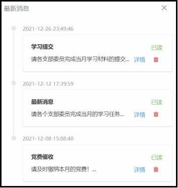 该系统还实现了对党员信息的录入、导入管理,能够对某个党员的信息进行格式化打印,可以精确地搜索到某个党员的详细信息;针对党费缴纳,该系统提供了统一缴纳的窗口,党费员可以统一查看各个支部党费的缴纳情况,并且可以清晰明了地知道哪些党员已经缴纳了当月的党费,哪些党员没有。此外,该系统该提供消息通知功能,管理员可以普通党员发送通知消息,还包含着学习模块、新闻模块,满足了党员管理过程中的学习需求。