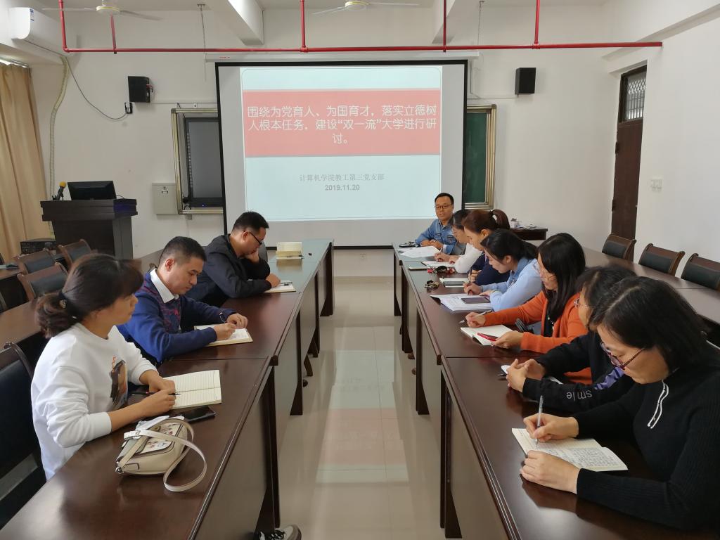 万象城awc官网登录入口教工第一党支部共有专任教师党员15名,其中:正式党员14名,预备党员1名。支部拥有完整的支委会机制,设有书记、副书记、组织委员、宣传委员和纪检委员岗位。支部通过不断加强教师的思想政治教育,使支部党员成为讲政治、讲规矩、讲道德、讲奉献的先锋模范,成为有理想信念、有道德情操、有扎实学识、有仁爱之心的优秀教师。支部成员在一流课程建设、一流专业申报、课程思政竞赛、专业人才培养方案修订,以及教育部工程认证申请、ACM创新团队和信息安全创新团队竞赛等教学科研工作中取得显著成绩: